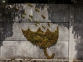 L’installation devait être prête pour la veille de l’événement, et tenir jusqu’au surlendemain. La mousse, qui garde sa couleur après séchage, était donc le matériau tout indiqué, tout comme le lierre qui a une bonne tenue après avoir été coupé.