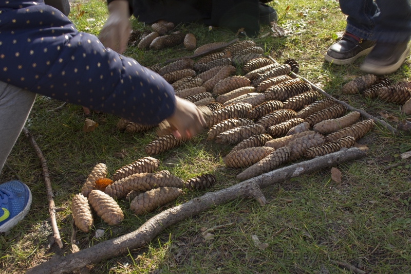 Même au mois de mars, il y a quantité de matériaux pour faire de belles réalisations ! Un chemine de feuilles pour l’écureuil, des couvertures patcwork pour le hérisson, des nids pour protéger les arbres, un mandala autour d’un cèdre…