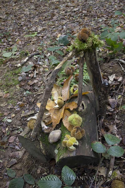 Les participants ont découvert quelques exemples d’œuvres de Land Art réalisées en automne, puis ont réalisé leur création, seuls ou en petits groupes.