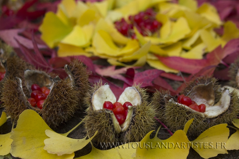 Des adultes mais aussi des enfants de 5 à 10 ans ont commencé la journée par un atelier de Land Art esprit « médecine traditionnelle chinoise ». Lydie a présenté les saisons dans cette médecine millénaire et en particulier l’automne, avec quelques exercices simples de Qi Gong et des approches de la nature à l’aide des sens forts à cette saison (odorat et toucher).